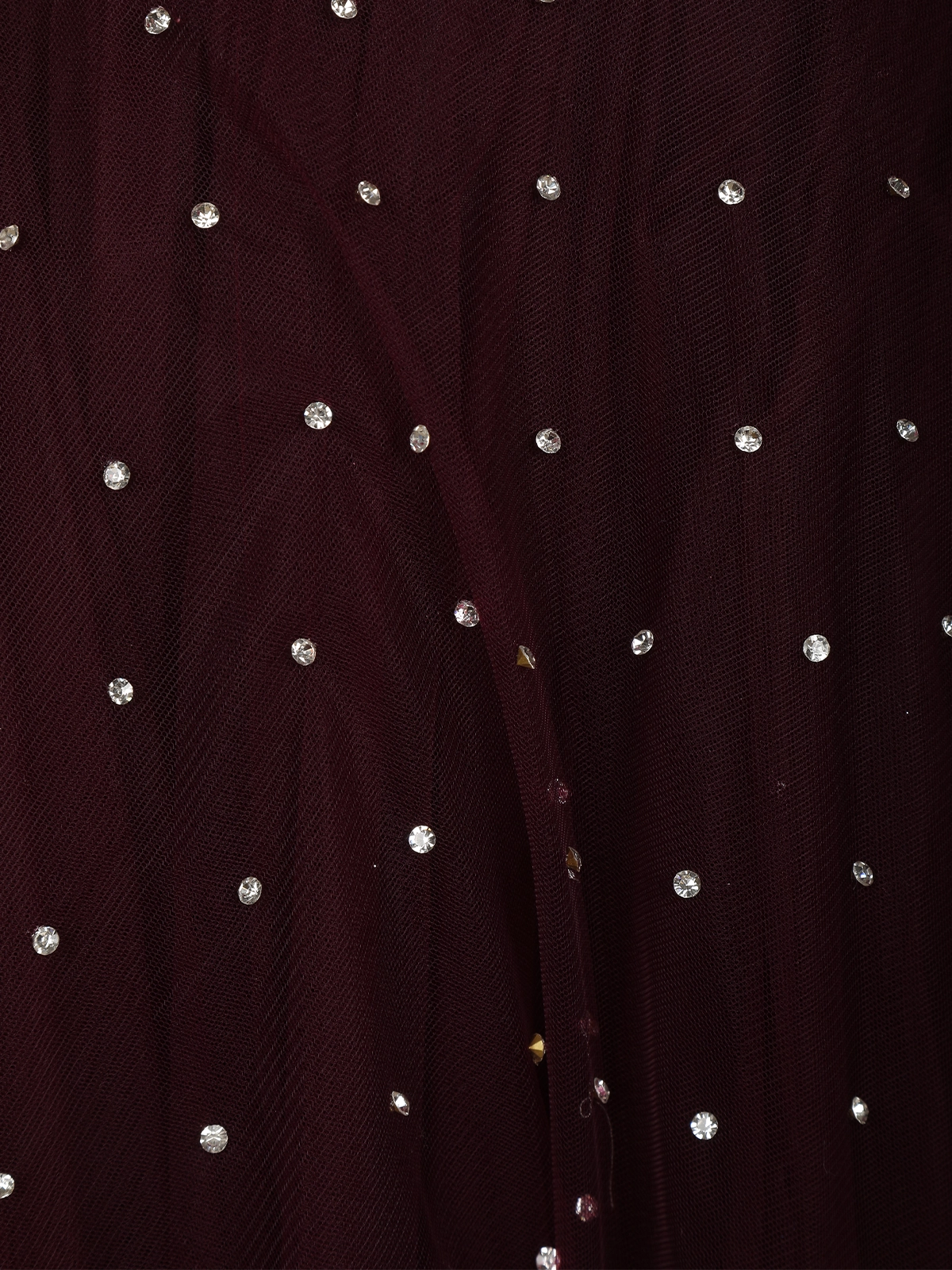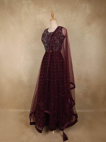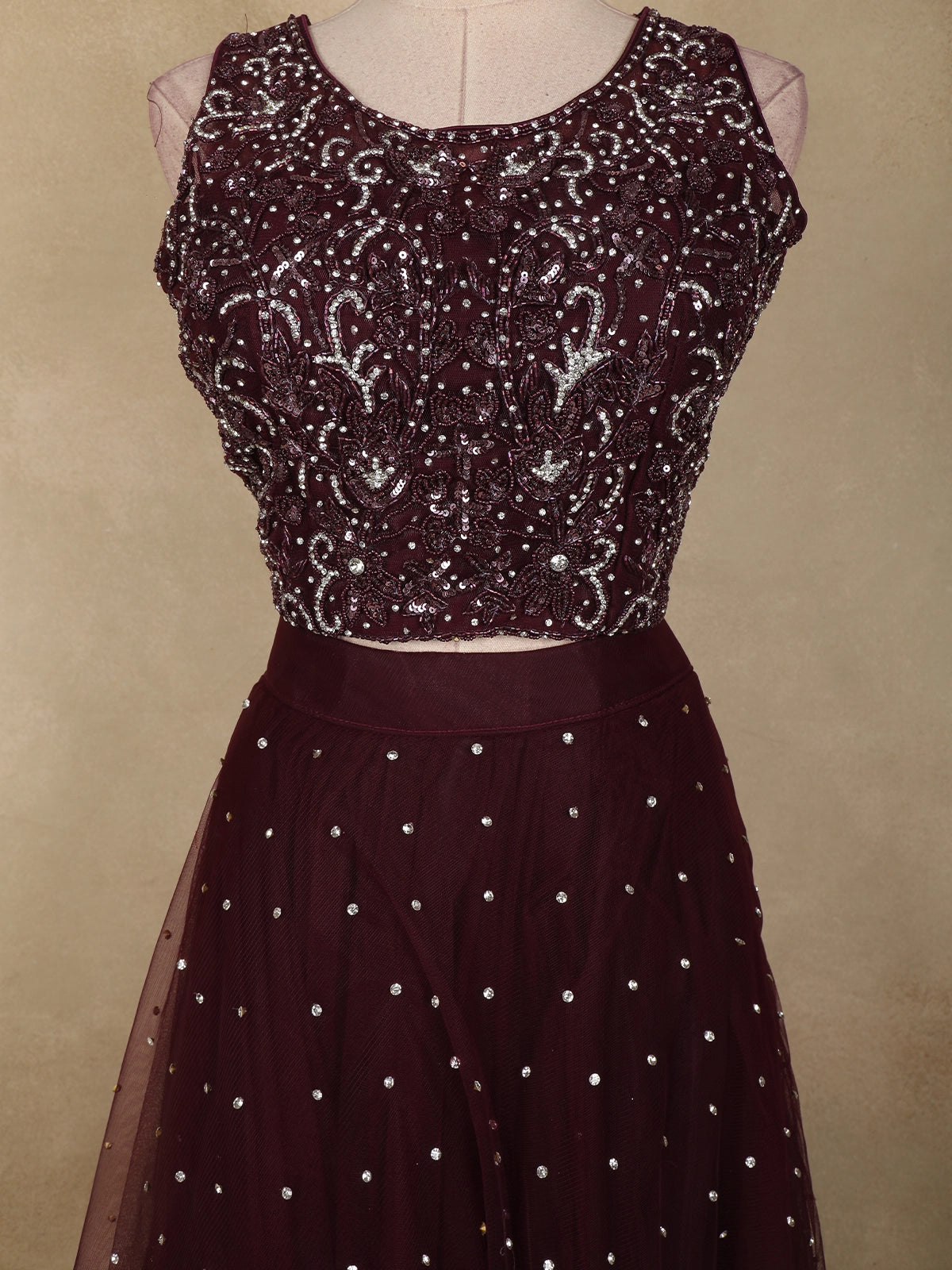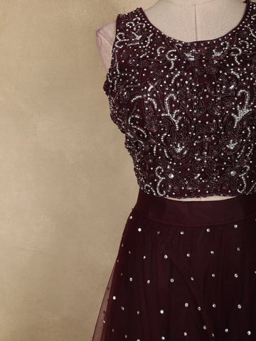 Wine Sequins and Beads Embroidered Design Net Lehenga With Net Dupatta
