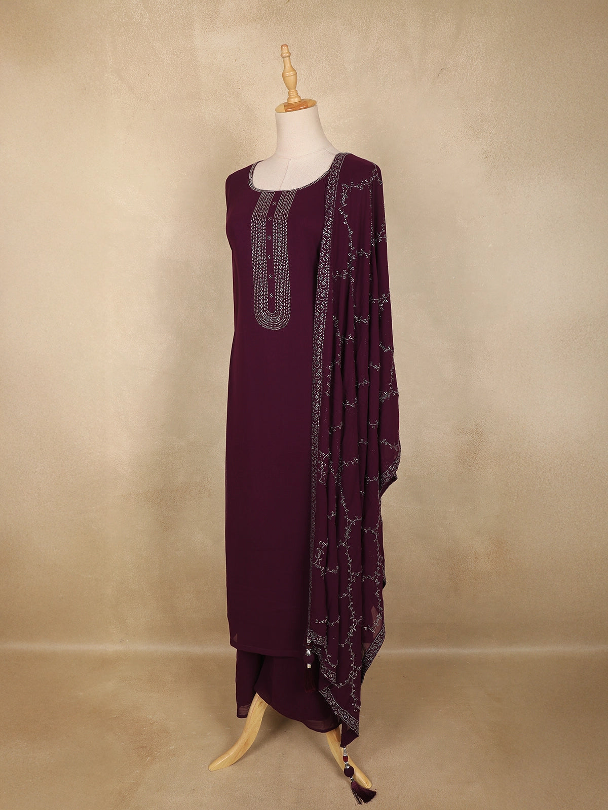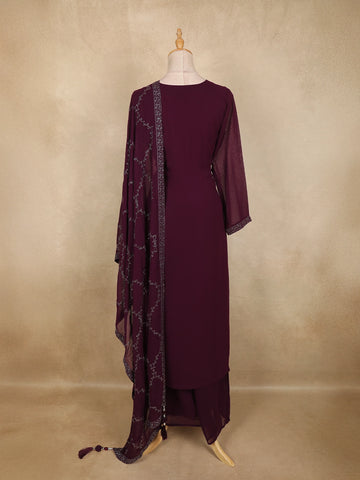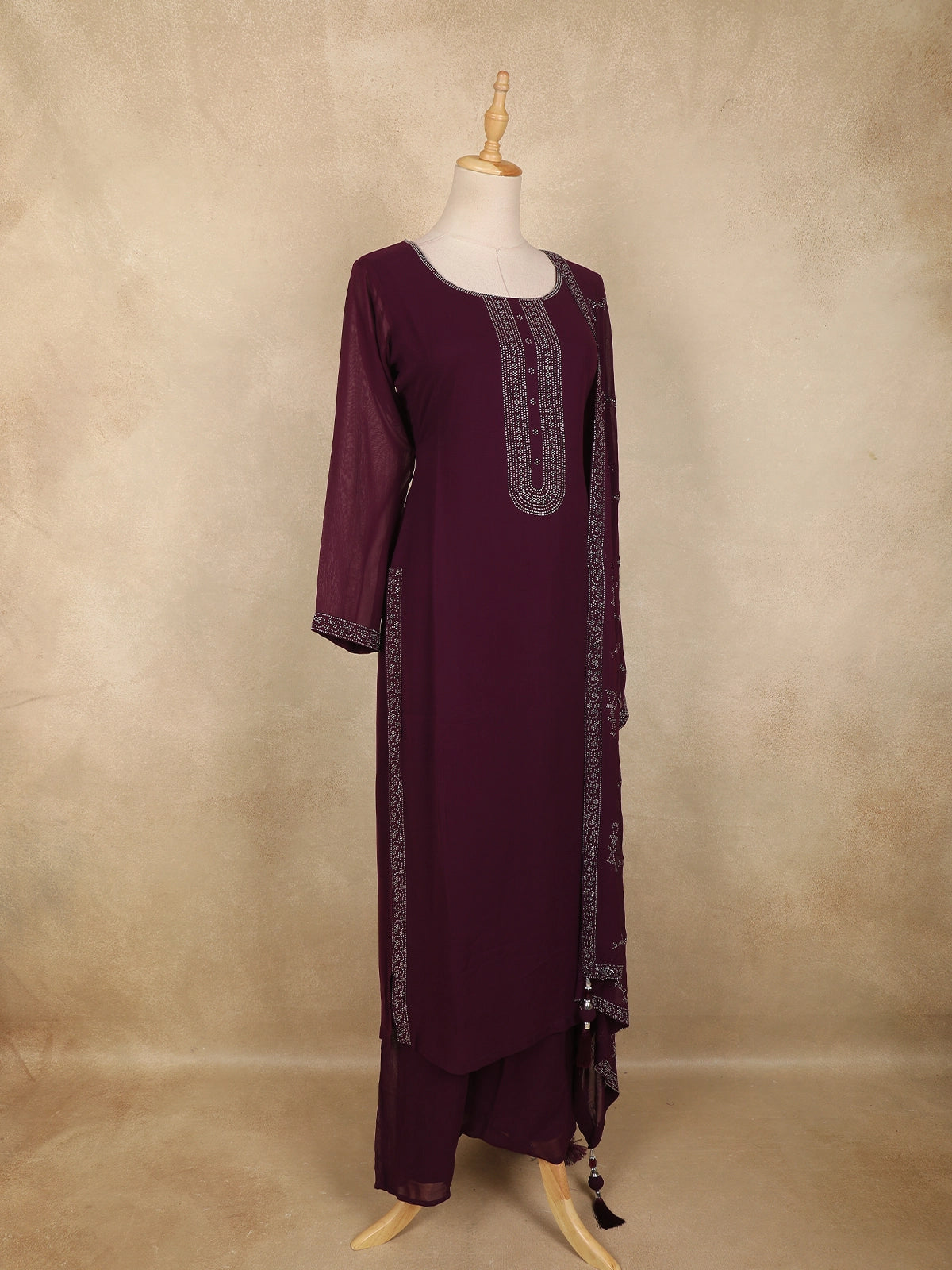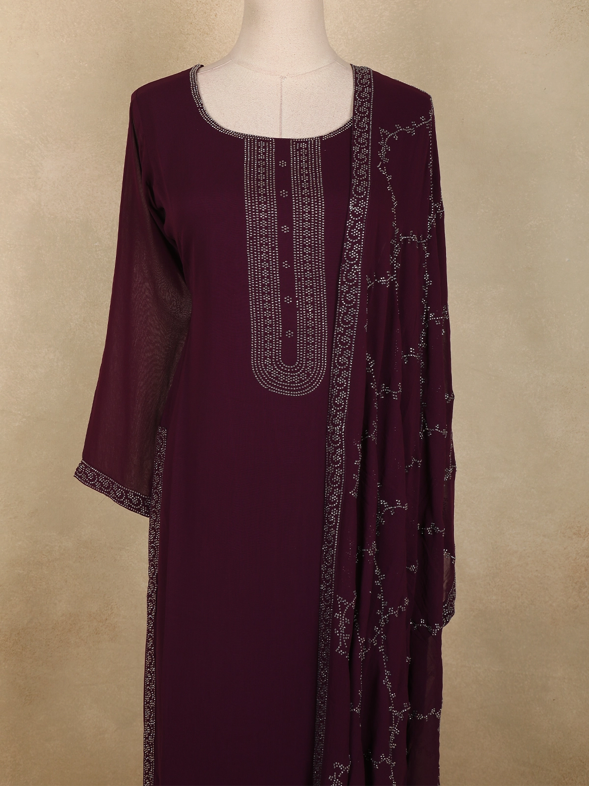 Wine Stone Embellished Chiffon Salwar Suit with Dupatta