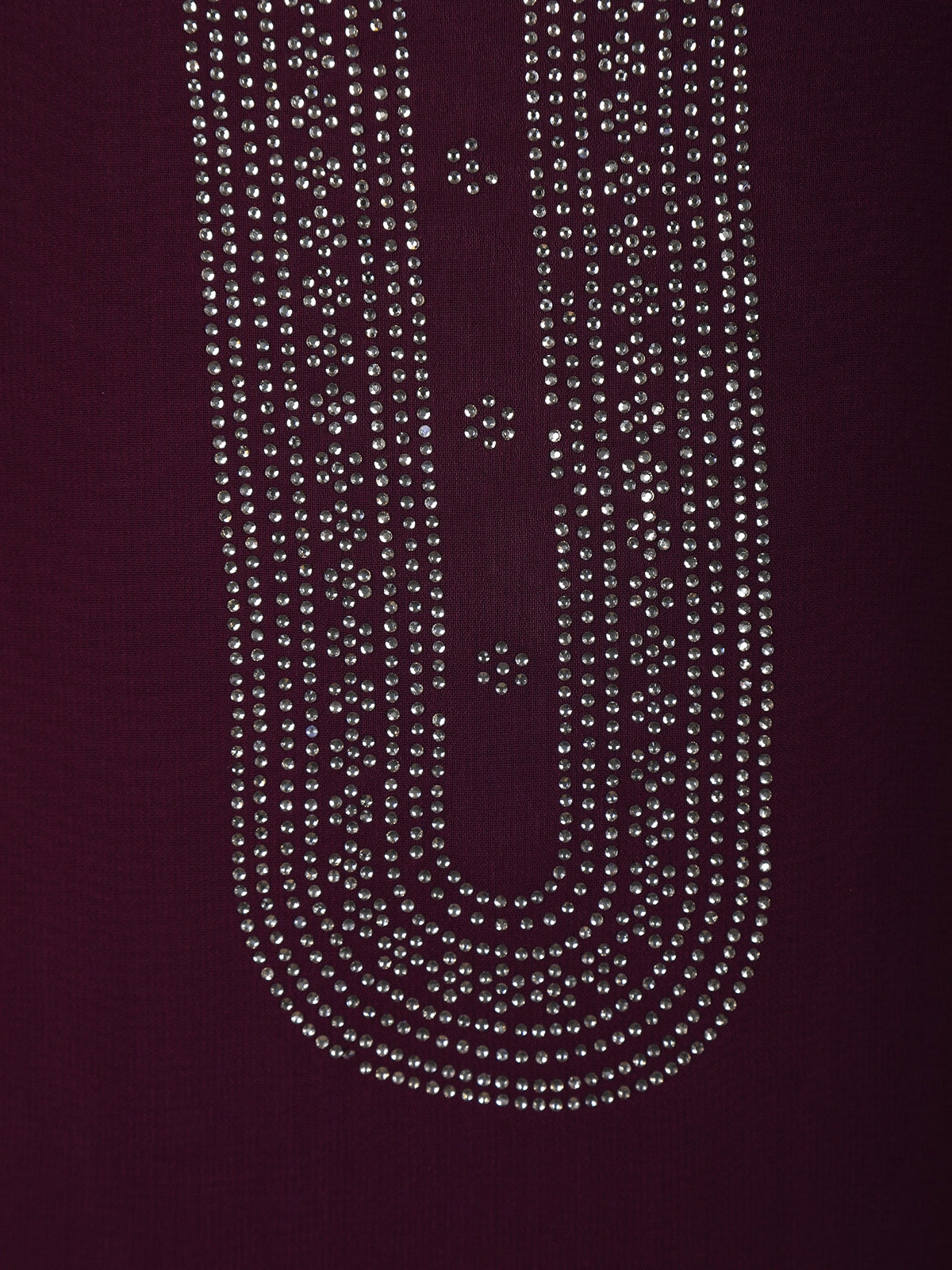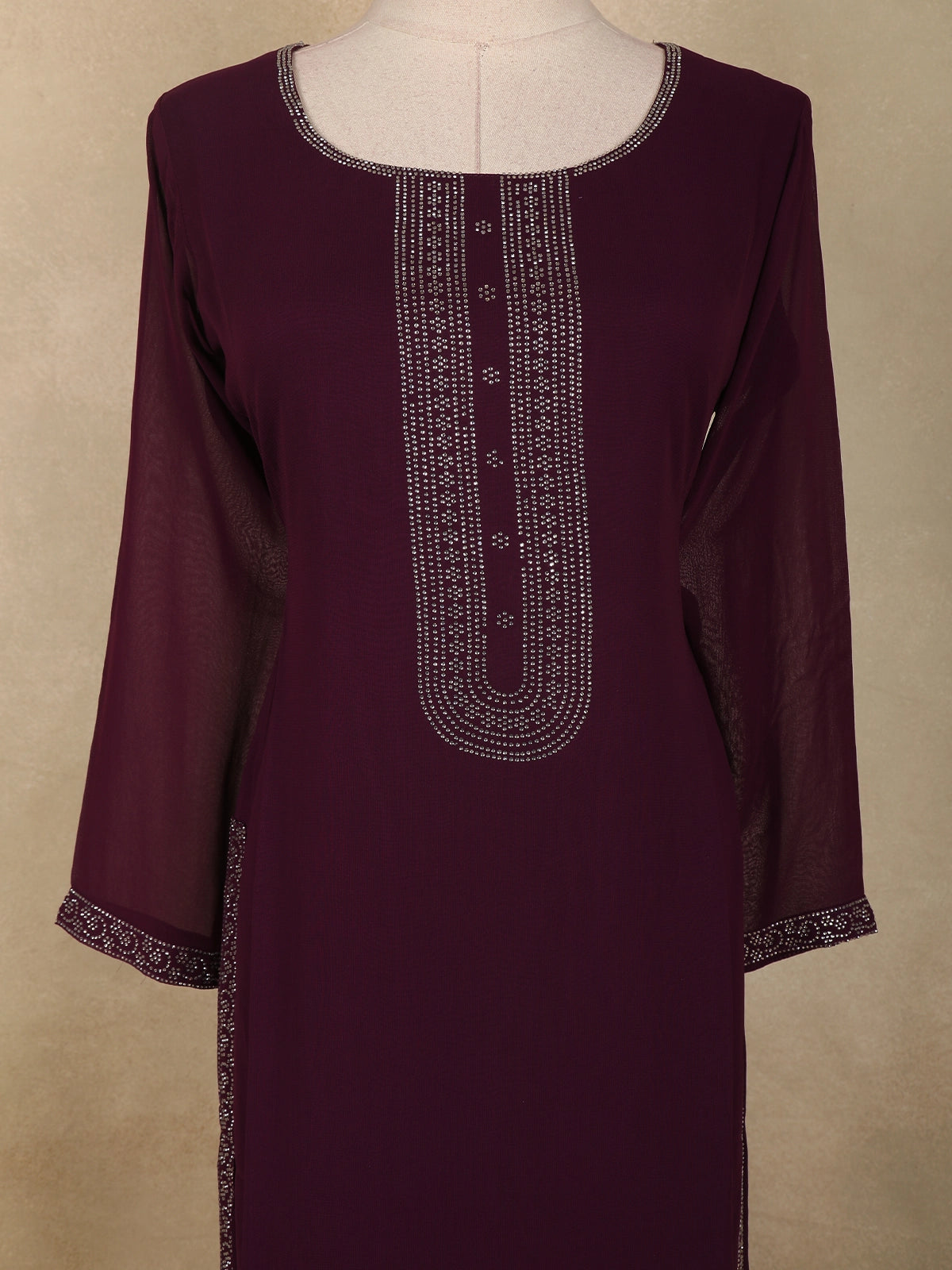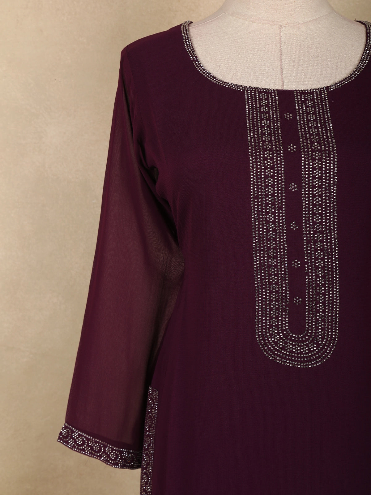 Wine Stone Embellished Chiffon Salwar Suit with Dupatta