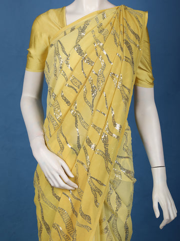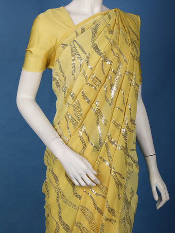 Step into the spotlight with this dazzling yellow georgette fancy saree, designed for women who love a perfect blend of elegance and glamour. Crafted in lightweight and flowy georgette fabric, the saree drapes effortlessly, offering both comfort and grace.