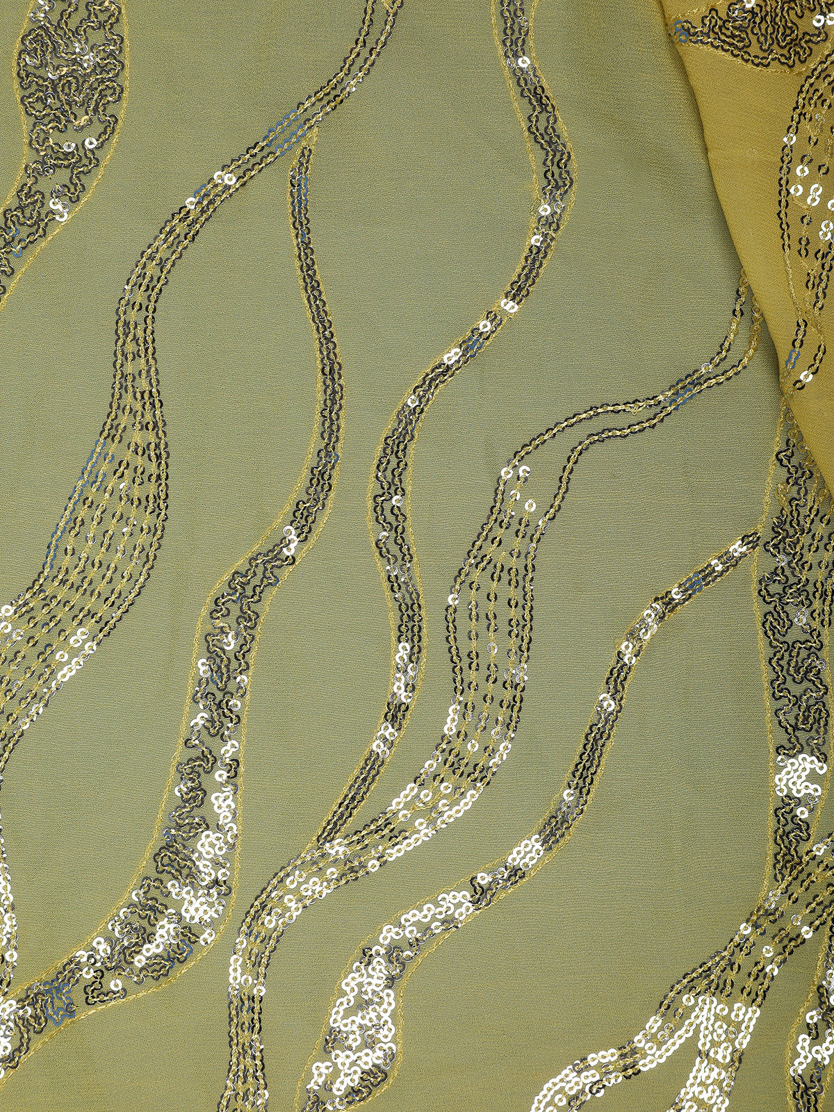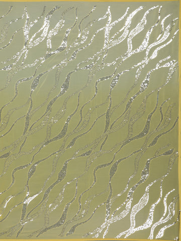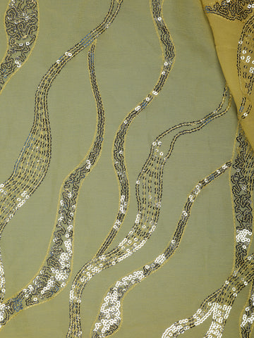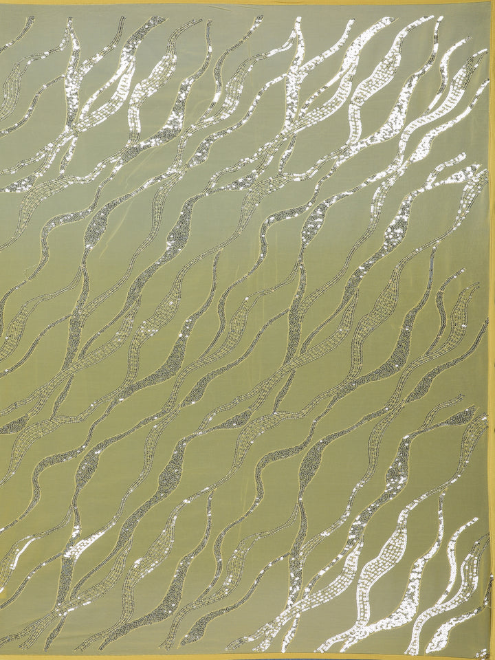 Adorned with shimmering sequin embellishments in stylish wavy patterns across the body, this saree exudes a radiant charm that makes it ideal for festive occasions, parties, and evening events. The matching blouse and pallu in a bright yellow hue keep the look coordinated, while the designer border adds a contemporary finishing touch.