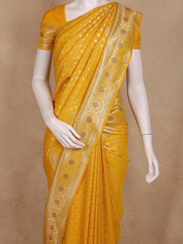 Yellow Floral Design Semi Banarasi Saree
