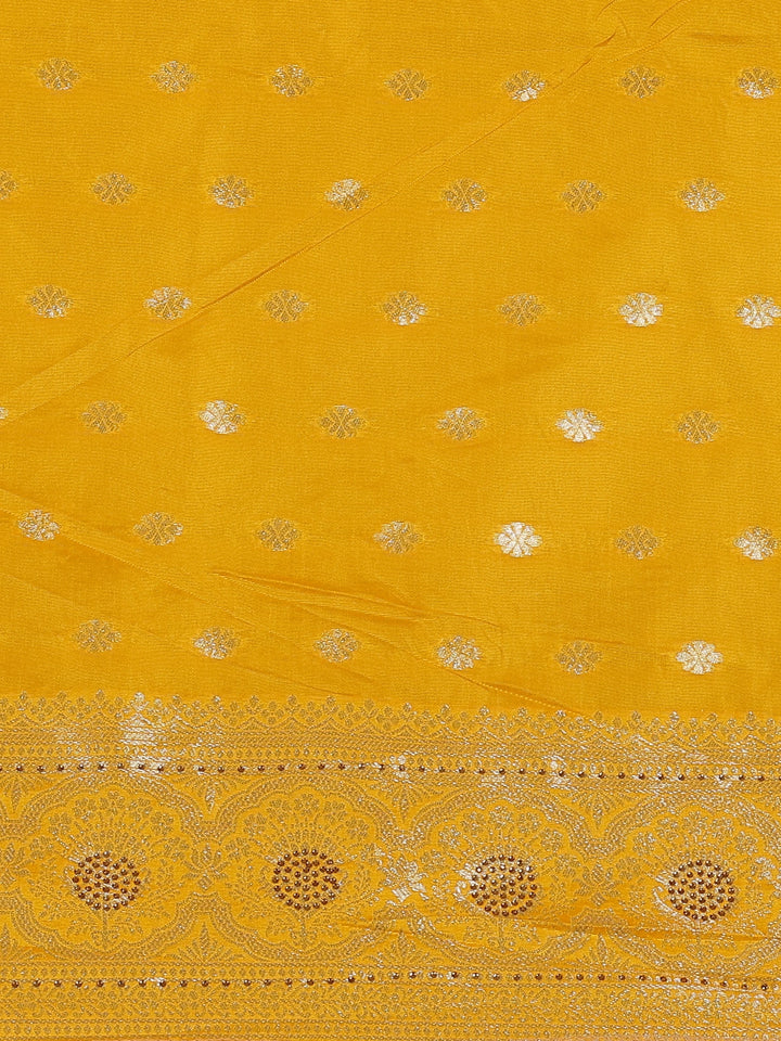 Bask in the glow of tradition with this Yellow Floral Woven Kanchipuram Silk Saree, a radiant ensemble that exudes festive charm and timeless grace. The vibrant yellow body is beautifully adorned with intricate woven floral motifs, capturing the essence of South Indian craftsmanship in every delicate detail.