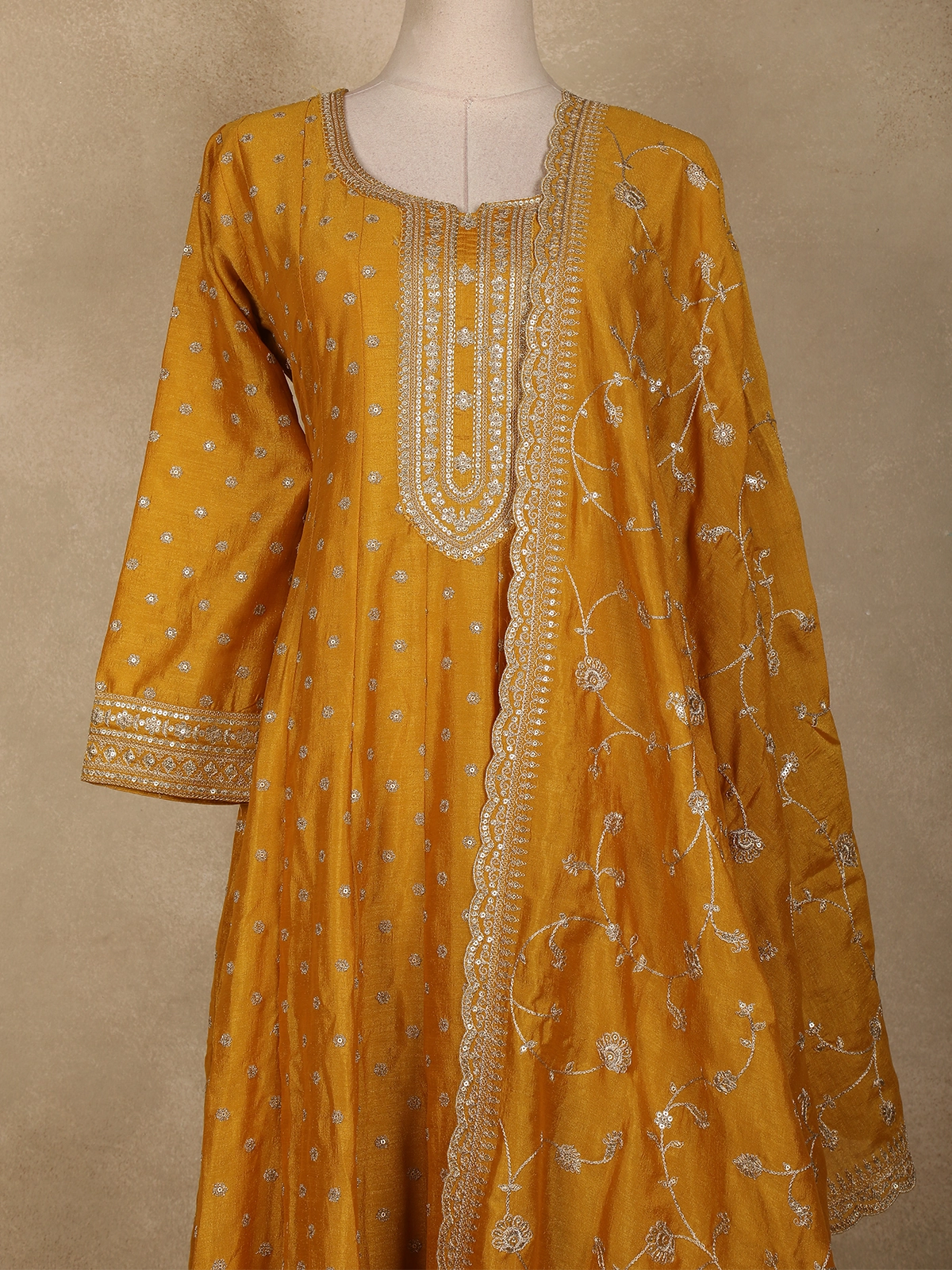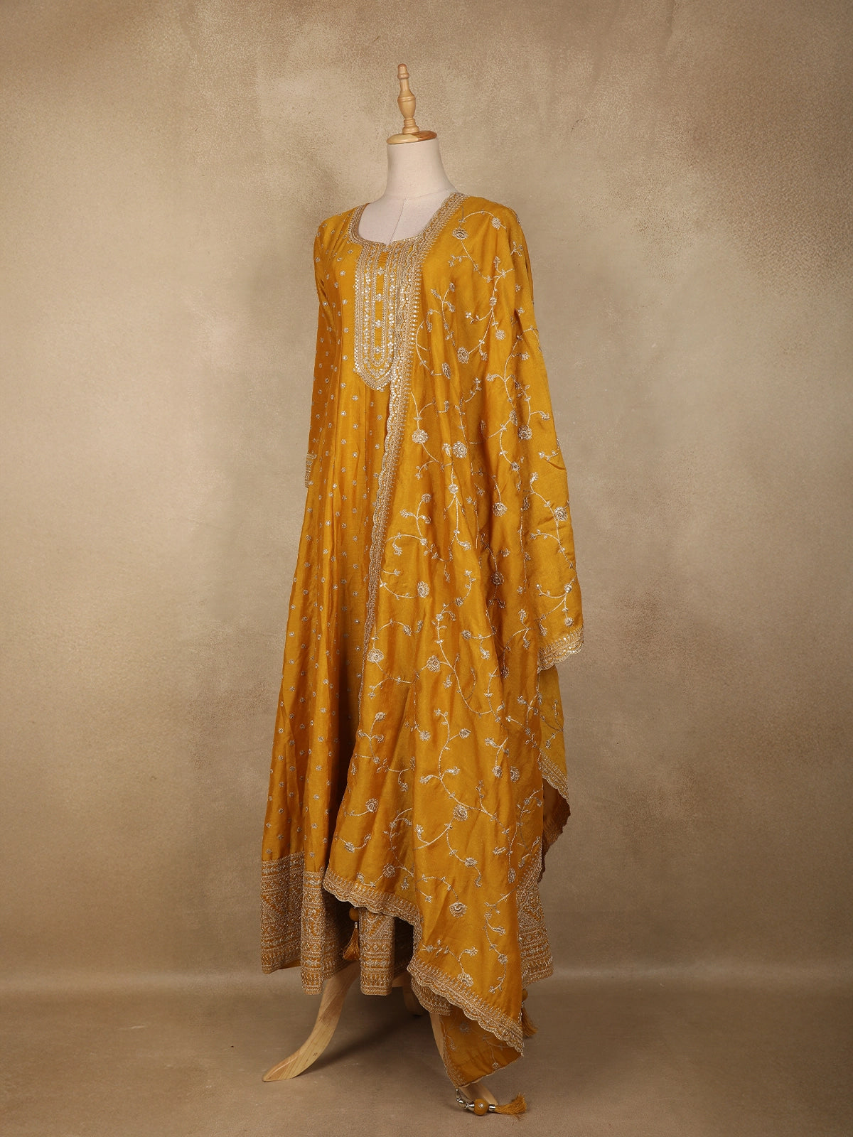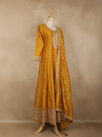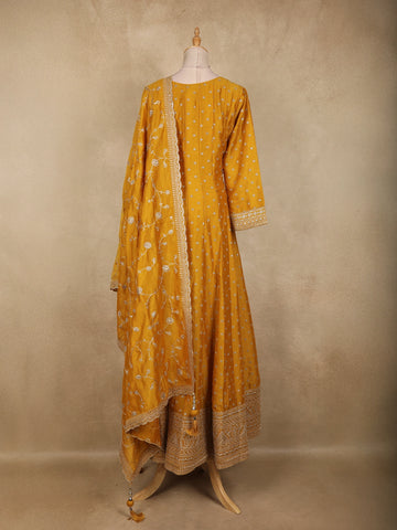 Yellow Floral Embroidered Georgette Gown with Dupatta
