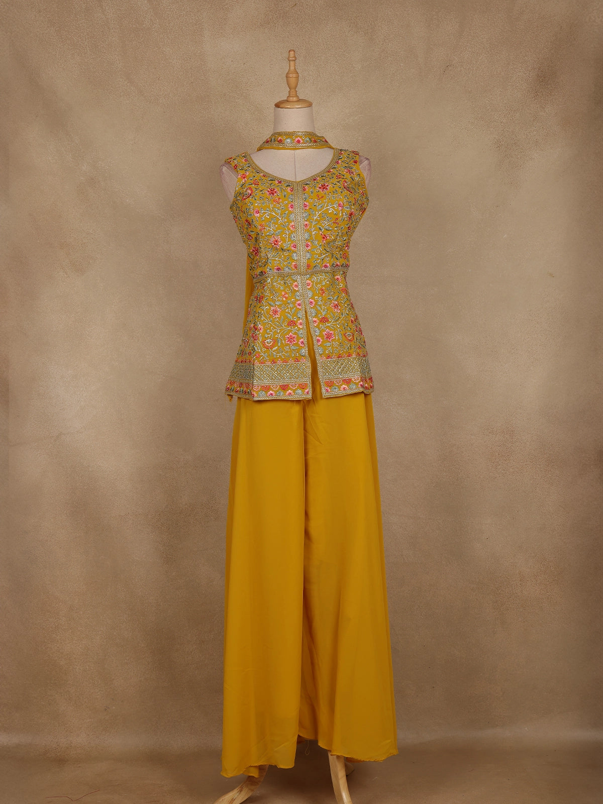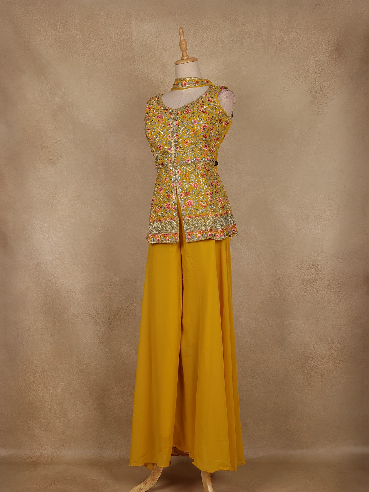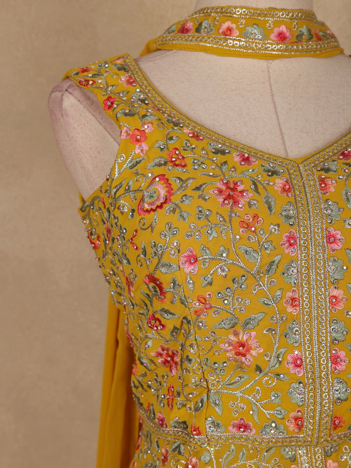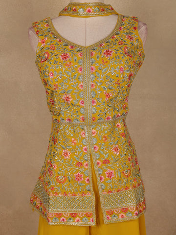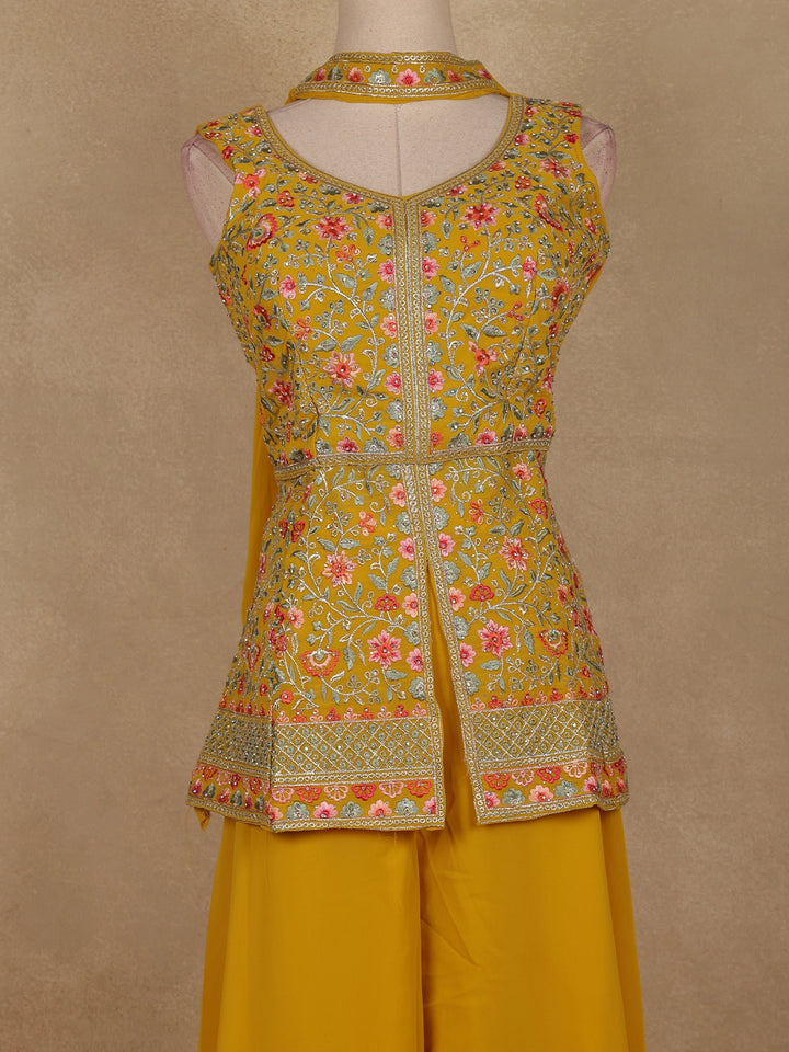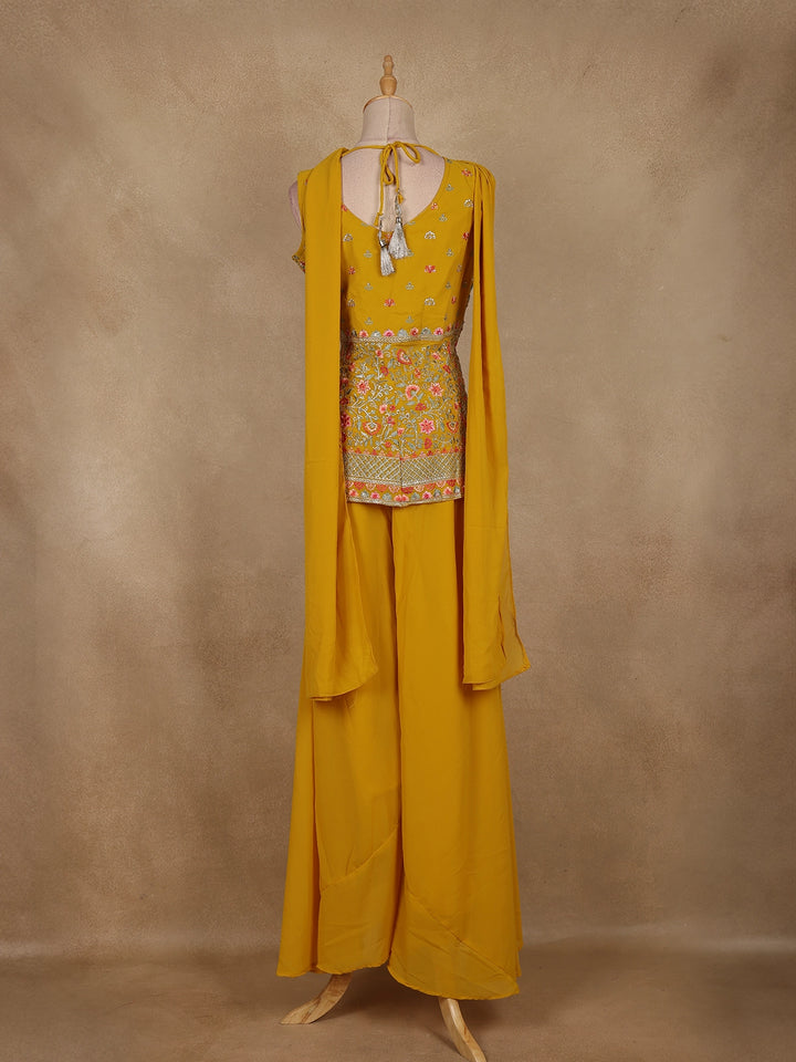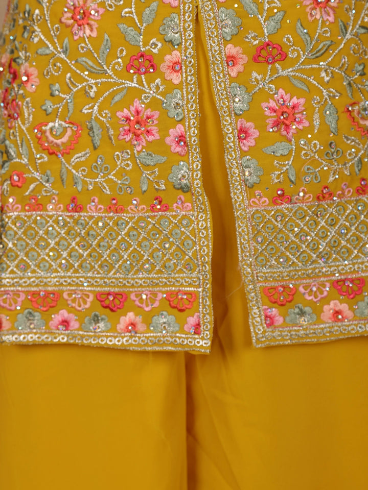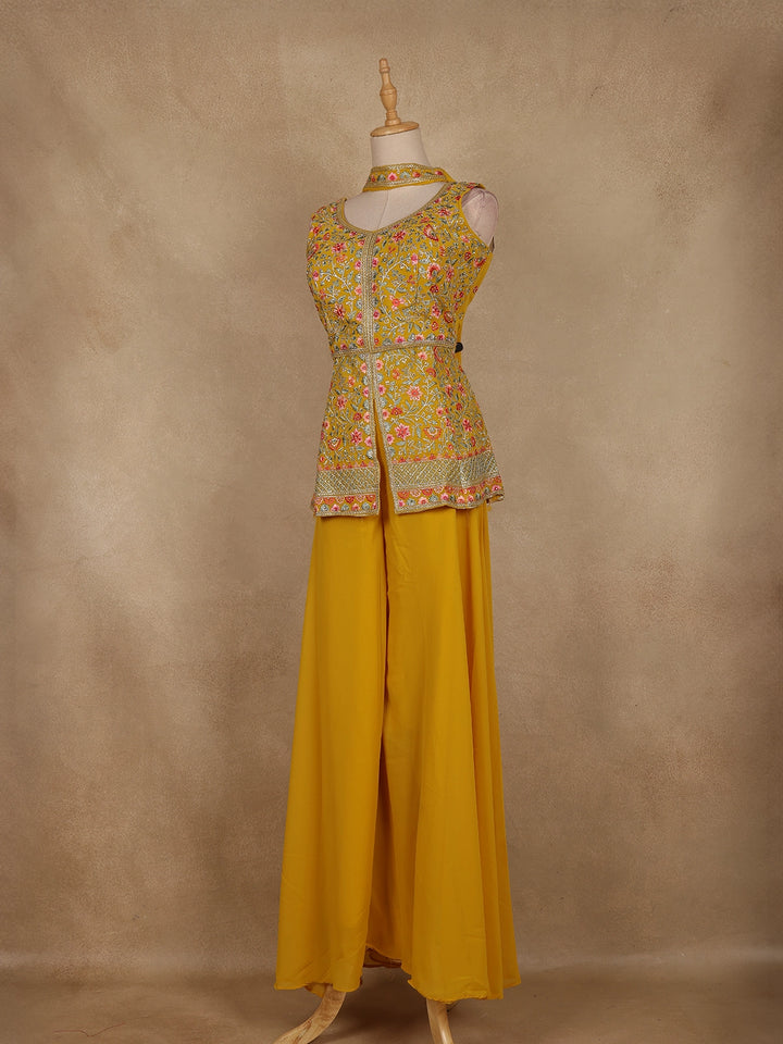 Yellow Floral Embroidered Georgette Palazzo Suit
