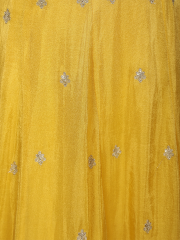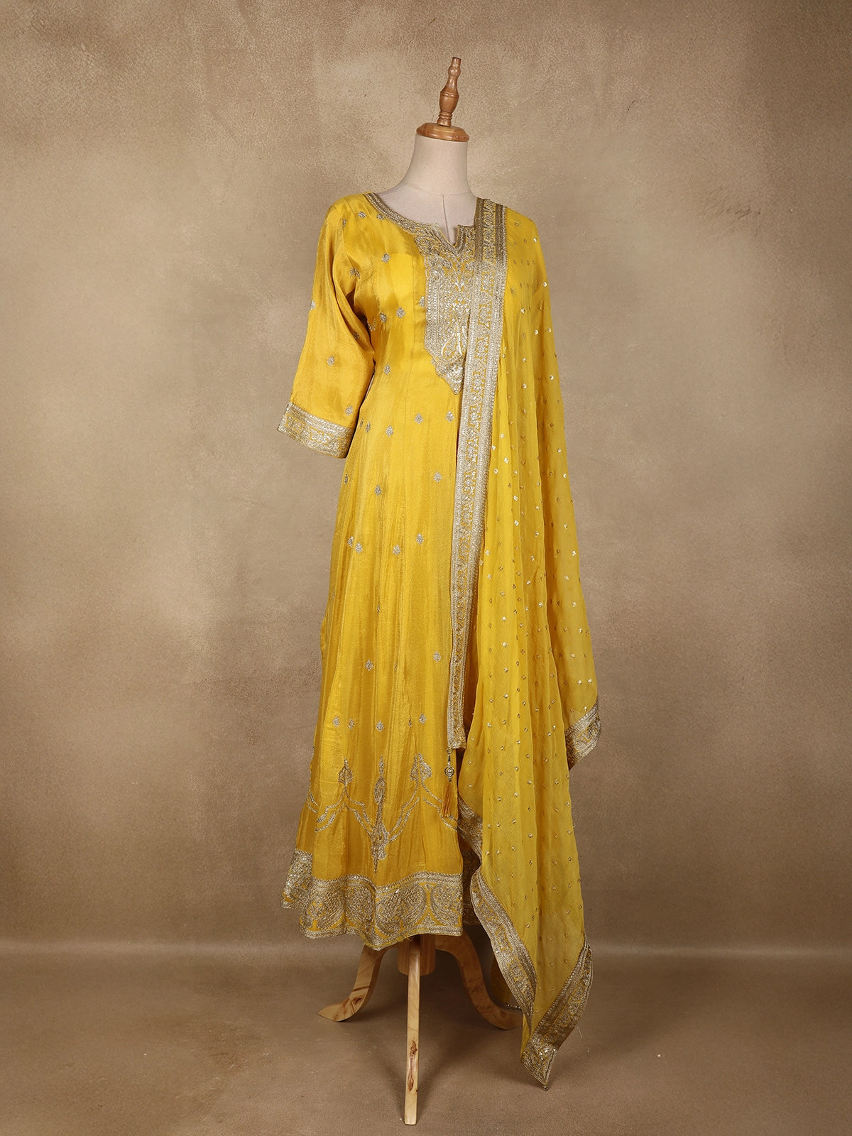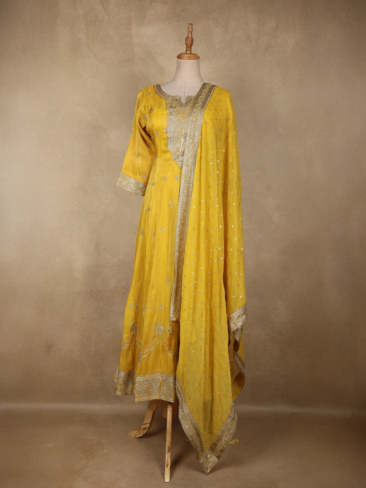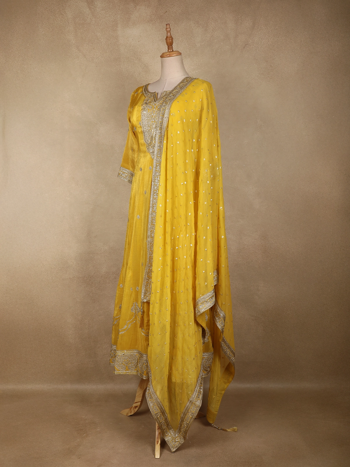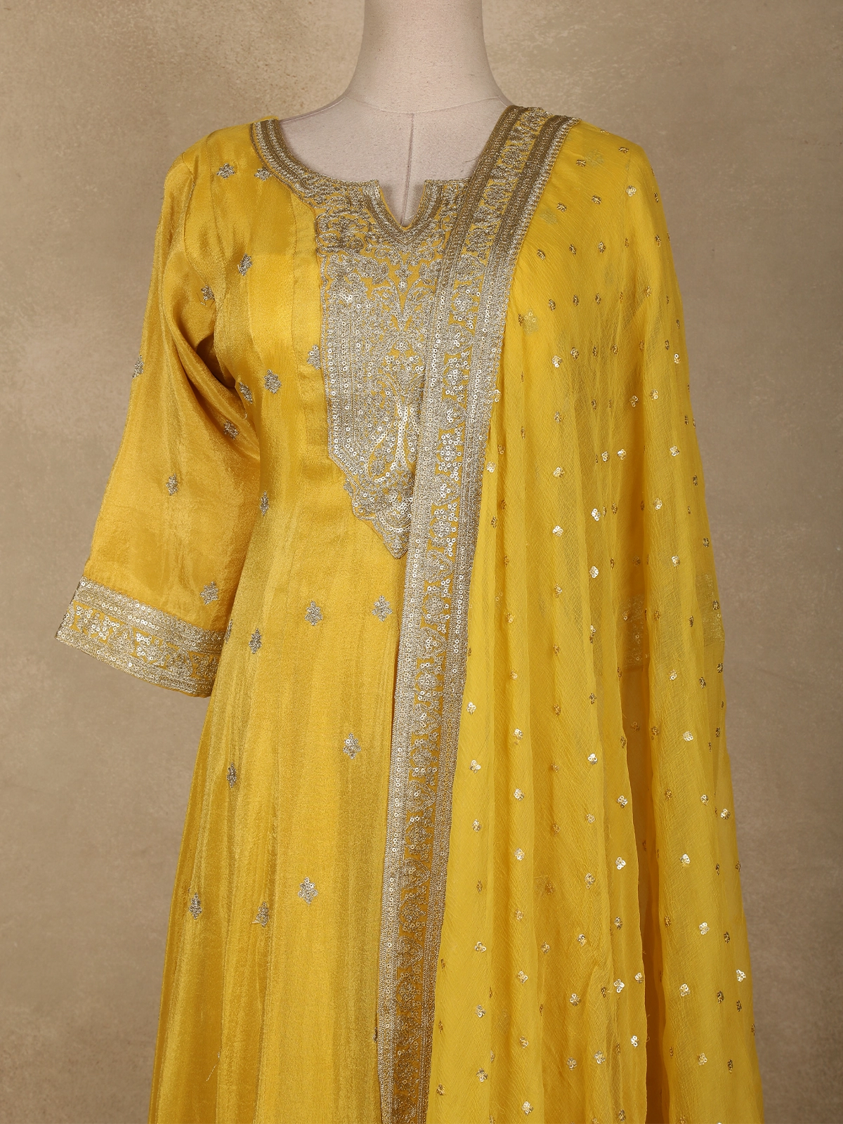 Yellow Floral Embroidered Tissue Silk Salwar Suit