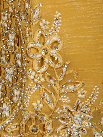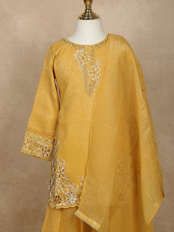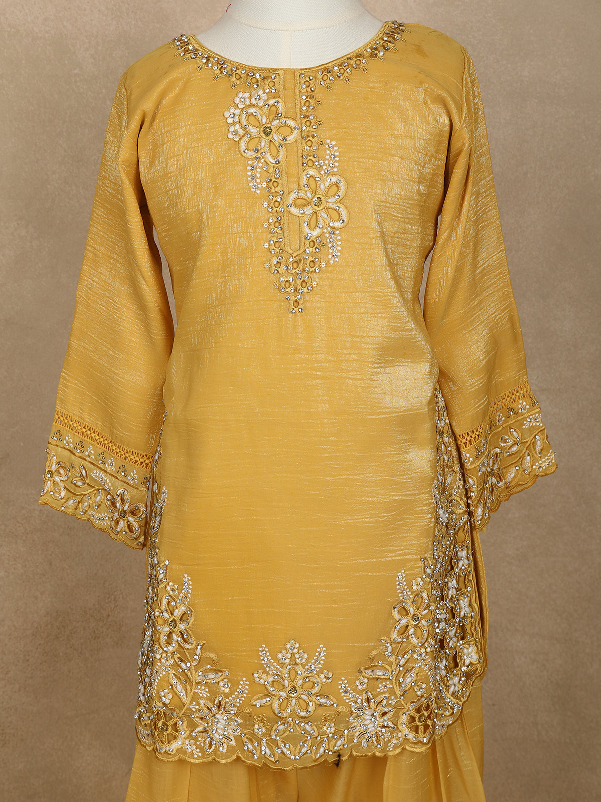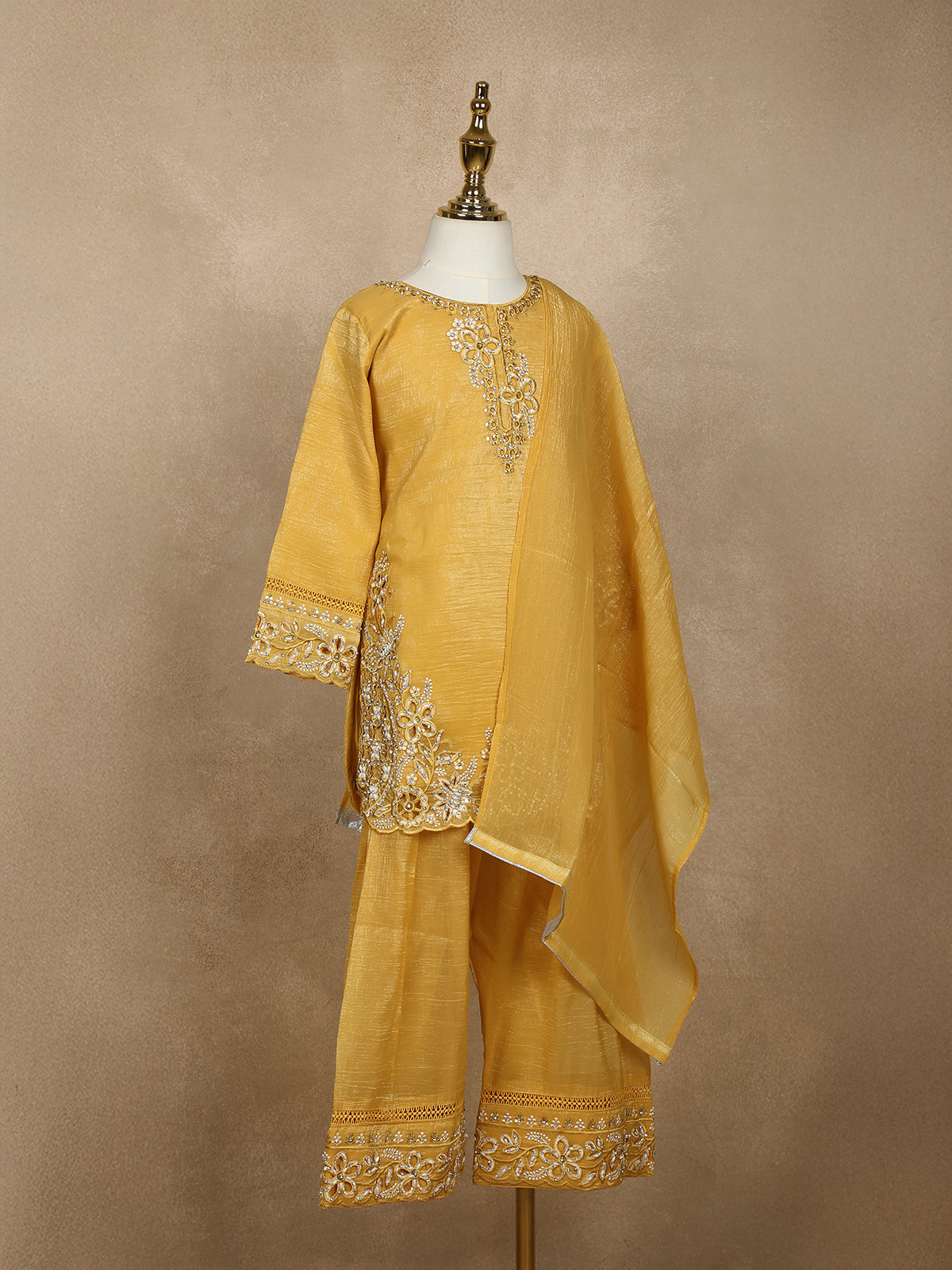Yellow Floral Sequins Embroidered Kids Tissue Silk Palazzo suit with Dupatta
