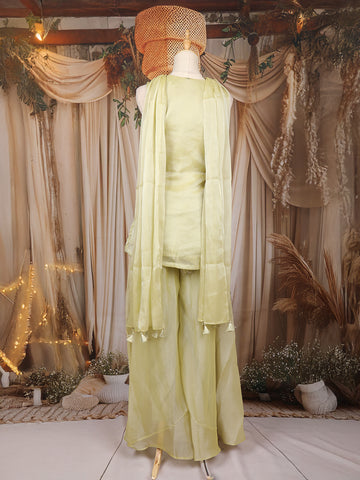 Yellow Floral Sequins Embroidered Organza Palazzo Suit