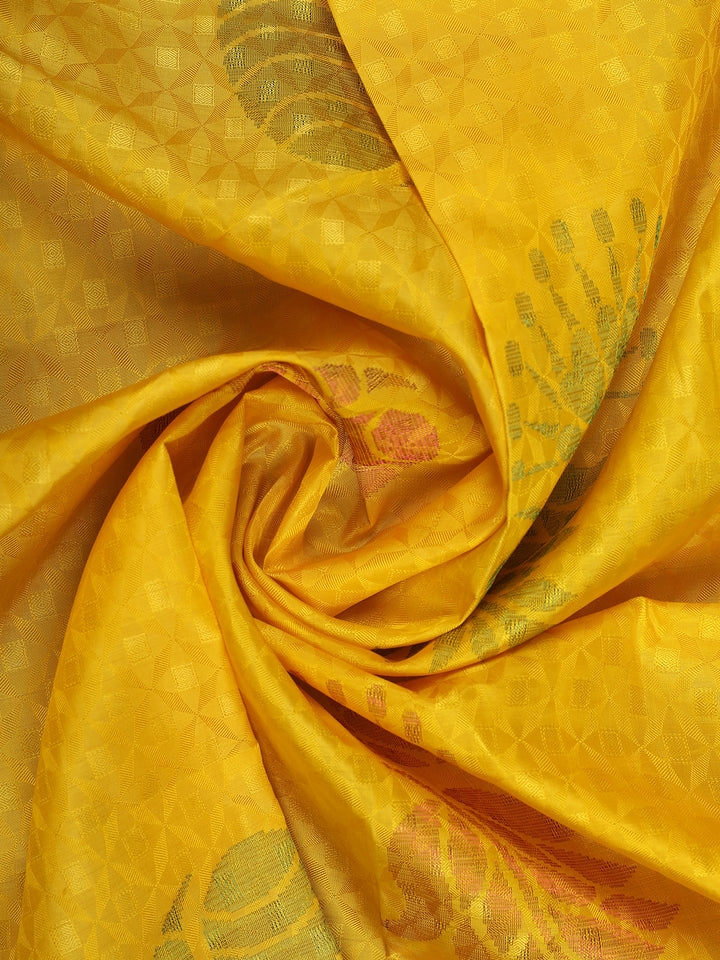 Yellow Floral Woven Design Pure Kanchipuram Silk Saree