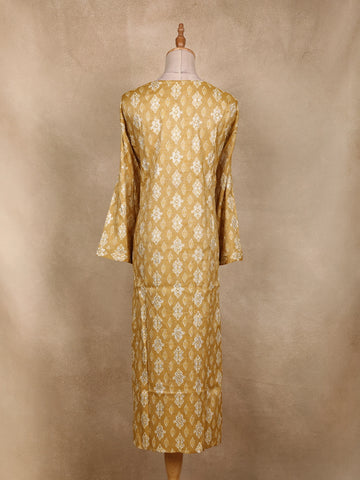 Drape yourself in subtle sophistication with this elegant Yellow Ikat Woven Cotton Kurti, designed for comfort and everyday charm. The fabric features a delicate white ikat weave pattern that adds a traditional touch to the minimal silhouette. The round neckline and front button detailing lend a hint of classic style, while the three-quarter bell sleeves add fluidity to the overall look. Crafted from soft handloom cotton, this kurti is lightweight, breathable, and perfect for both workwear and casual outings.