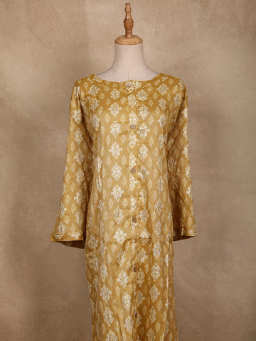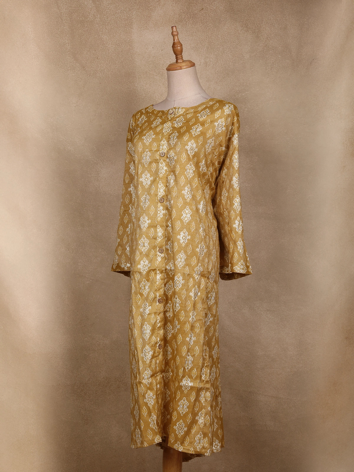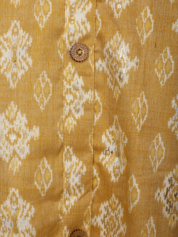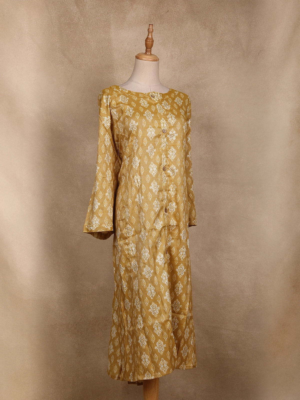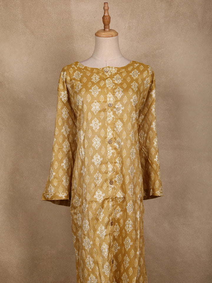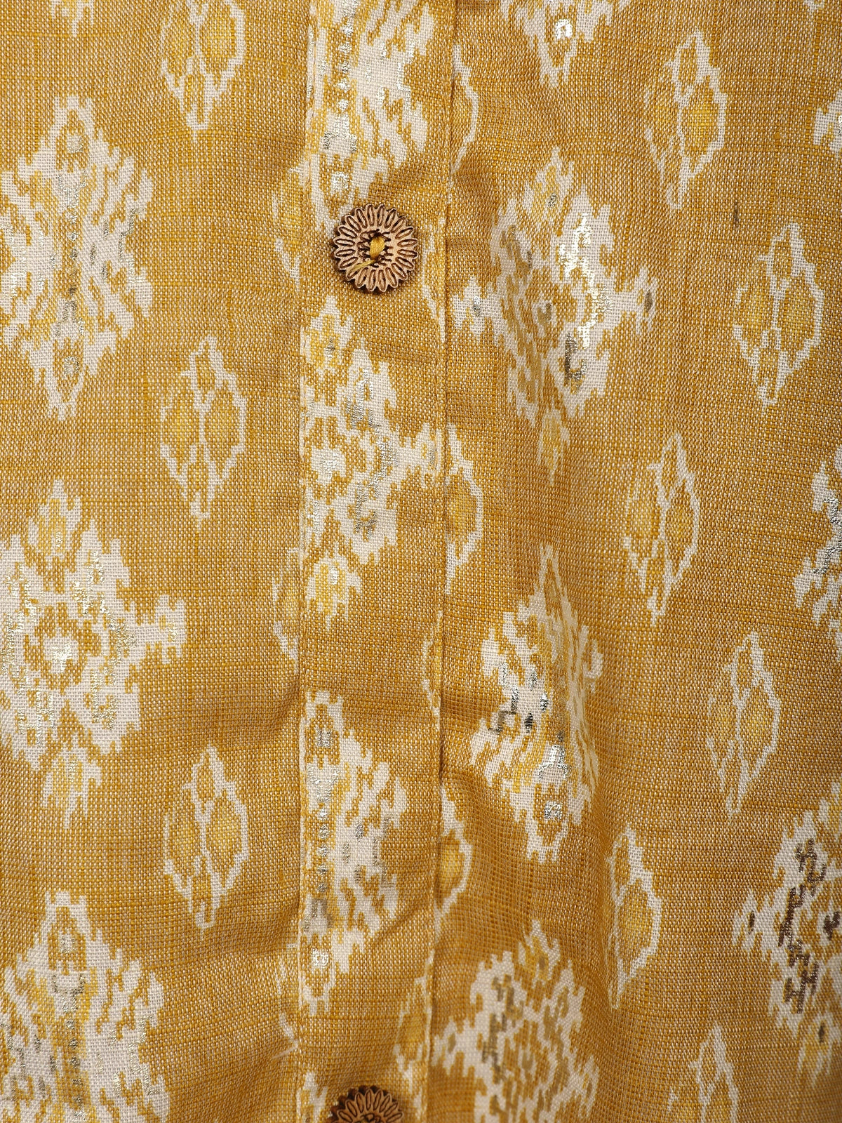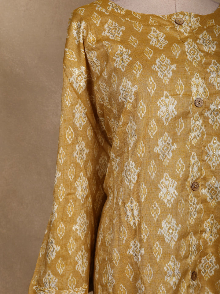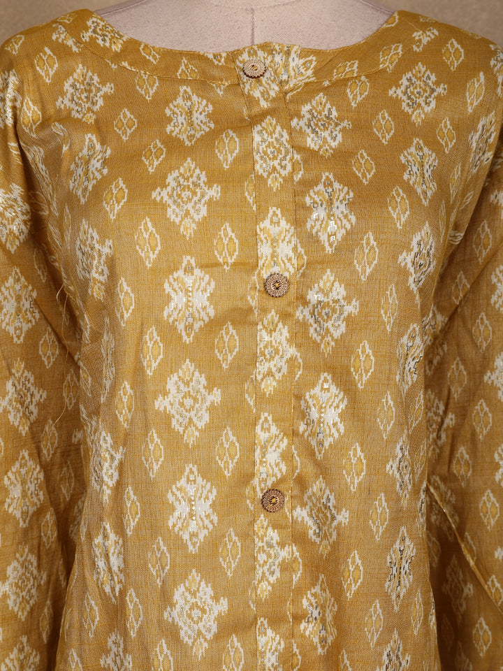 Yellow Ikat Design Cotton Kurti with Button Detailing