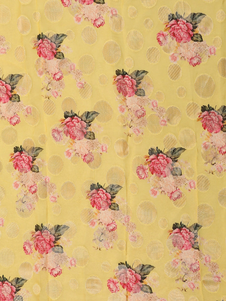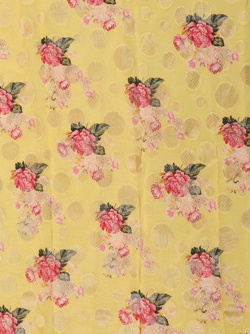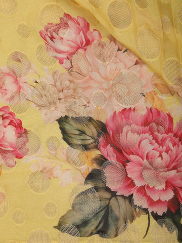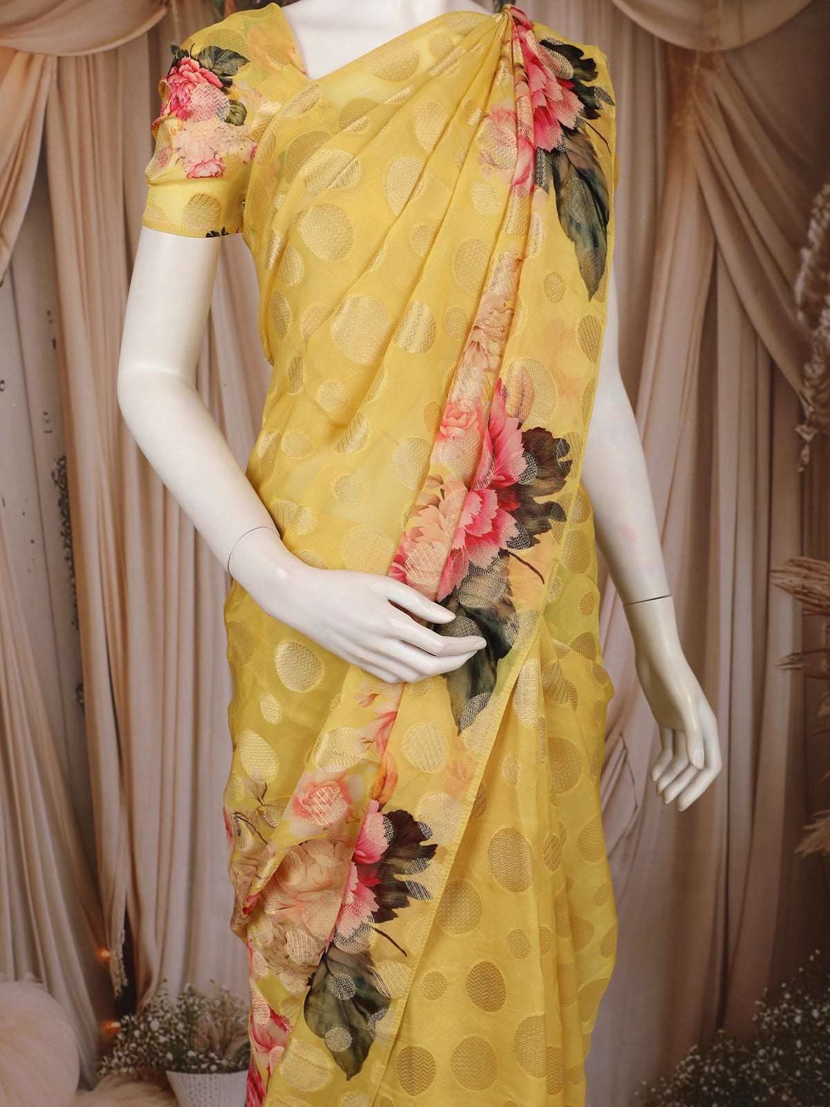 Yellow Polka Woven Design Organza Saree with Floral Printed Border