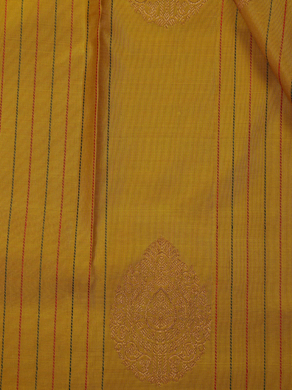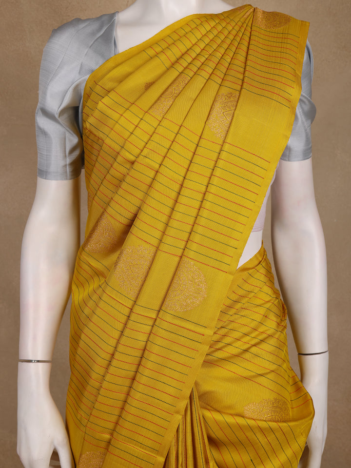 Yellow Stripes And Butta Woven Pure Kanchipuram Silk Saree