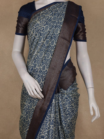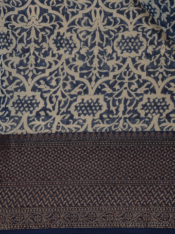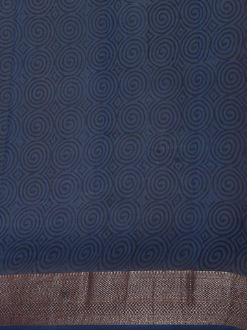 Dark Blue Block Print Chandheri Cotton Saree