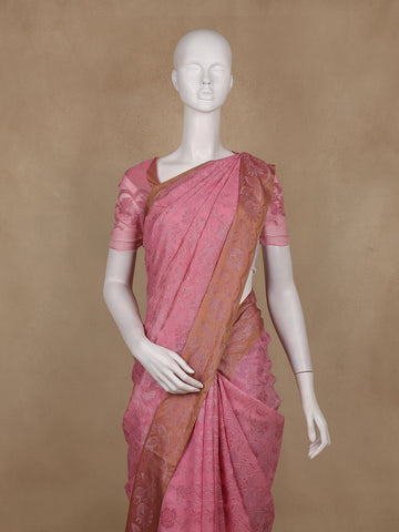Light Pink Floral Design Semi Banarasi Silk Saree