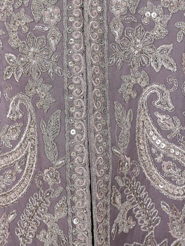 Lilac Grey Floral And Paisley Embroidery Net Sherwani Suit
