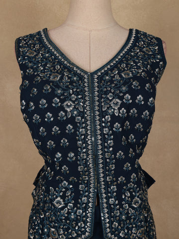 Peacock Blue Floral Embroidered Georgette Palazzo Suit